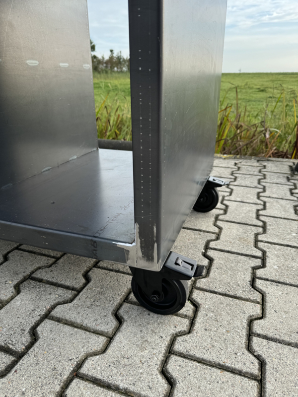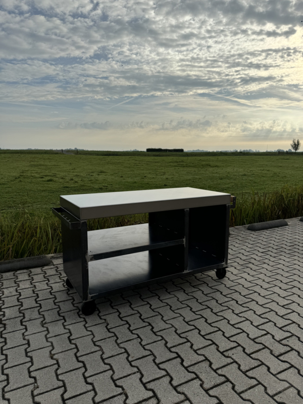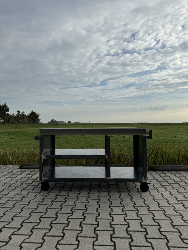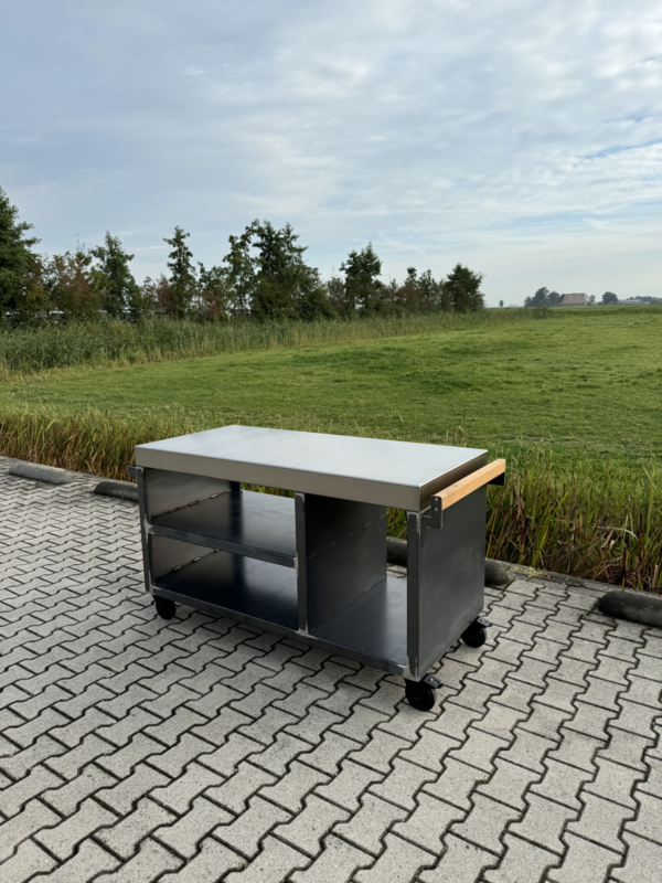 Deze luxe en robuuste mobiele buitenkeuken is een absolute blikvanger voor iedere tuin of buitenruimte. De constructie is vervaardigd uit 3 mm dik CORTEN-A staal en afgewerkt met een hoogwaardig, geslepen RVS werkblad van 3 mm dik. Een perfecte combinatie van stoer design en praktisch gebruiksgemak.